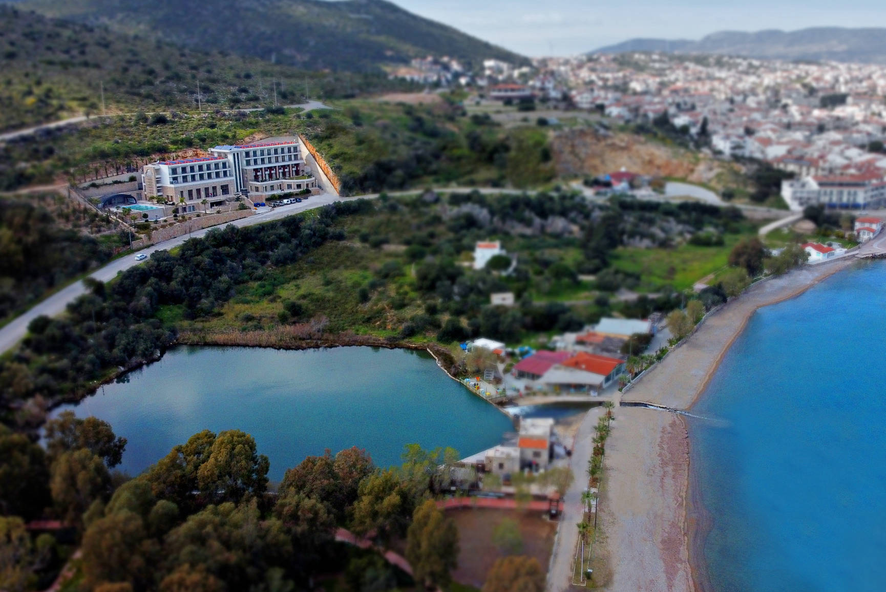 Datça manzarasına karşı yüzme havuzu
